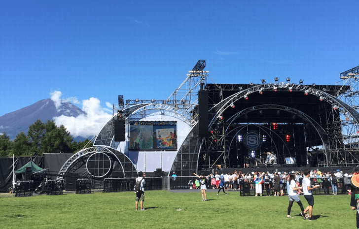 晴れていれば、富士山が見えてロケーションは最高ですが、雨が降るとどのステージもすぐに水没します。